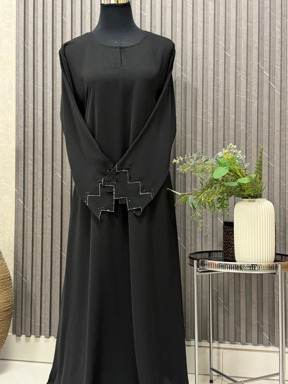 Straight abaya and 100% guaranteed premium stones on the sleeves and duppata